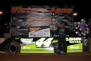 Chris Madden celebrates in NDRL victory lane after his Tennessee Tipoff feature win.