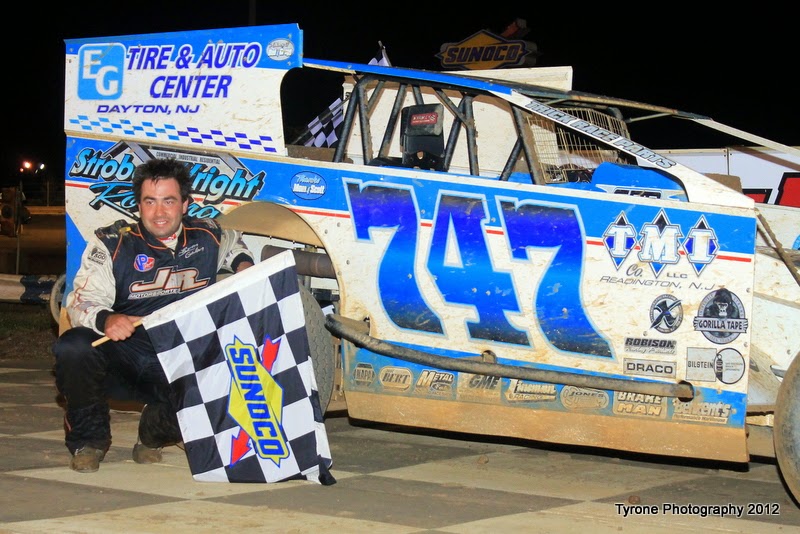 Big block modified driver Ryan Godown moved forward from his 6th place starting spot and eventually found victory lane Sunday afternoon at Big Diamond Speedway in Pottsville, PA. Godown, from Ringoes, New Jersey, passed Jeff Strunk on lap 10 and lead the remained of the race. The 2nd Annual “Money in the Mountains” victory was worth $7,500 to the New Jersey native.- NDRL Late Models at PPMS, Winchester & Virginia Motor (4/10-11-12)