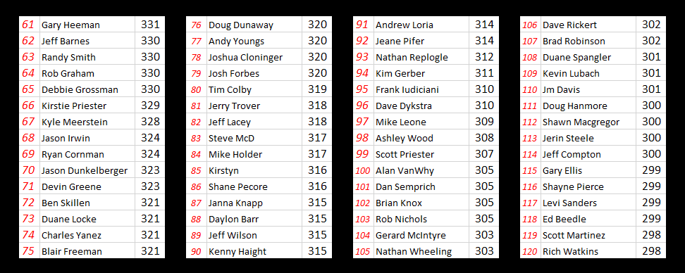 Here are the complete Pickem results, thanks to everyone who participated! Our next contest will be for the DIRTcar Nationals at Volusia Speedway Park in February.