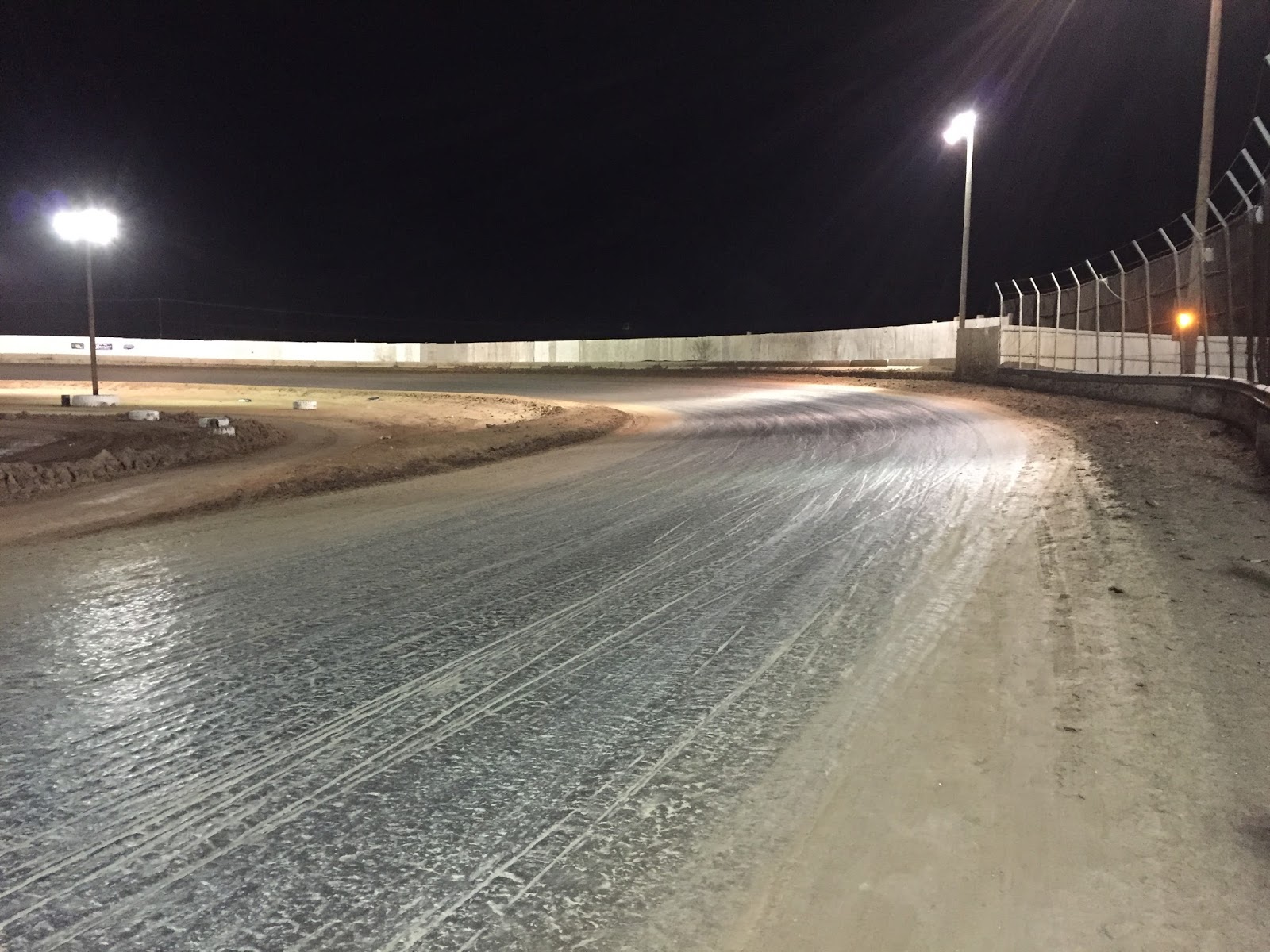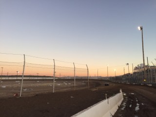 Friday was a cloudy day in Tucson, Arizona and the sun remained dormant for a majority of it. I had aspirations that this would translate into a racing surface that retained moisture for nearly the entire night, but those hopes were dashed very early in the night. I arrived as the sun was setting and after taking some pictures when cars were in staging, for hot laps, I discovered the track was already starting to dry in the middle-to-lower lanes. There was still moisture up-high, which clearly indicated that would be the fast line in heat racing action.