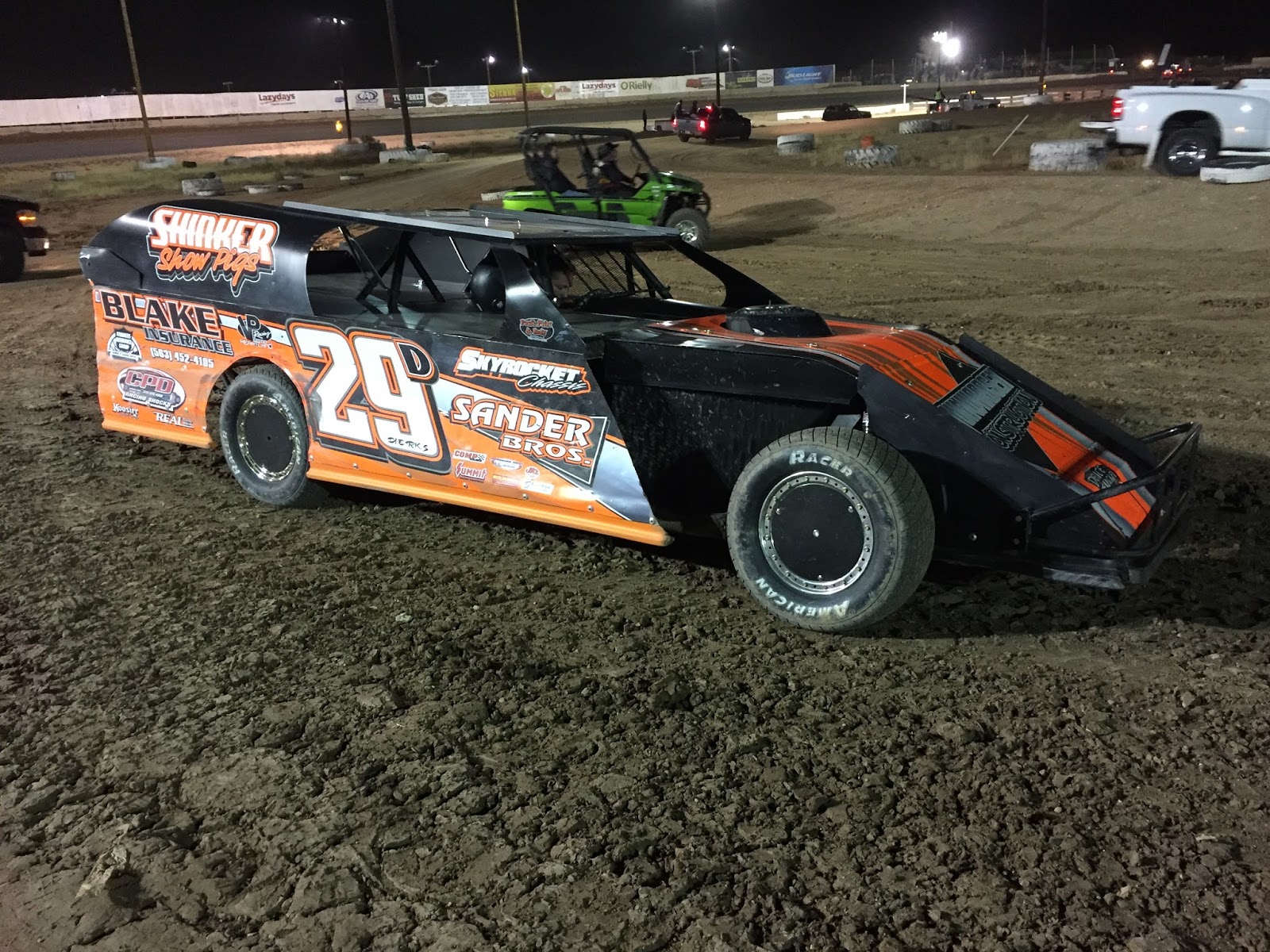 It was an amazing race, as all 30 laps were run under green. The pace slowed dramatically by race end, as tires were warm and grip was at a minimum. Talking with Brandon Sheppard after the race, as he is a driver who prefers running the high side, he confirmed there was just not much to hold on to, up high. “B-Shepp” explained “you could get your right rear up high and hug the cushion, but you couldn’t charge the cushion, or get sideways on it”. Sheppard pointed to his right rear spoiler, which had folded, after making contact with the wall, siting “it was very easy to jump the tiny cushion and the wall would be waiting for you”. Overall, it was a great show and general reaction was delight, after watching two “heavyweights” of the Dirt Late Model world do battle on the big 3/8th’s mile track! Here’s a list of the full results from Friday, including starting positions in parenthesis. Also listed are the current Late Model point standings, with 2 nights of racing left: