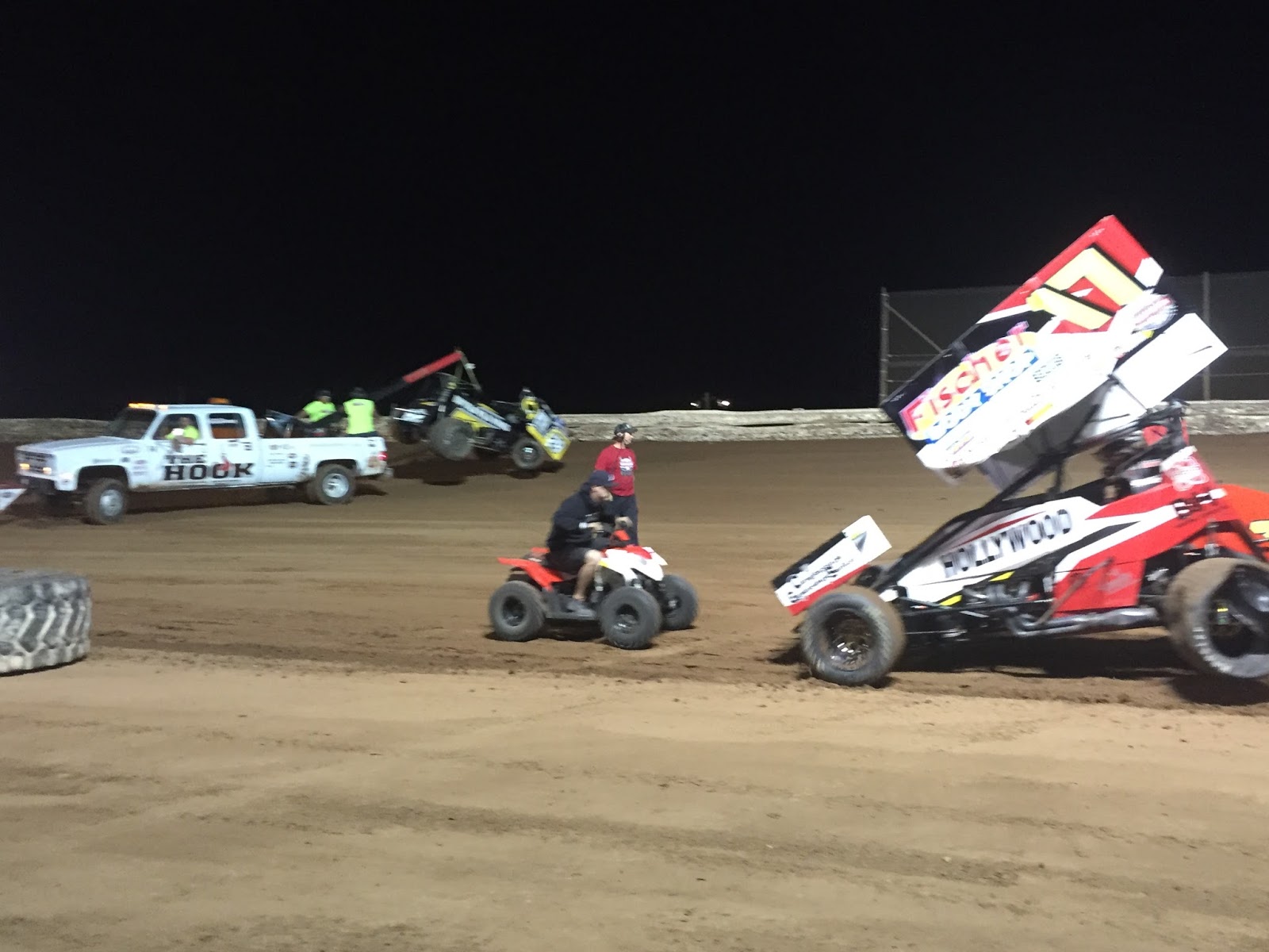 Thankfully, both drivers were okay. Unfortunately, the damage was too much to overcome for Zomer’s team, marking the end of their night. Baughman was unable to finish the Heat Race, but would return to compete in the night’s Last Chance Showdown. Shane Stewart finished 2nd in Heat Race 2, behind Saldana, with Jason Johnson, Logan Schuchart, Jacob Allen and Terry McCarl transferring as well.