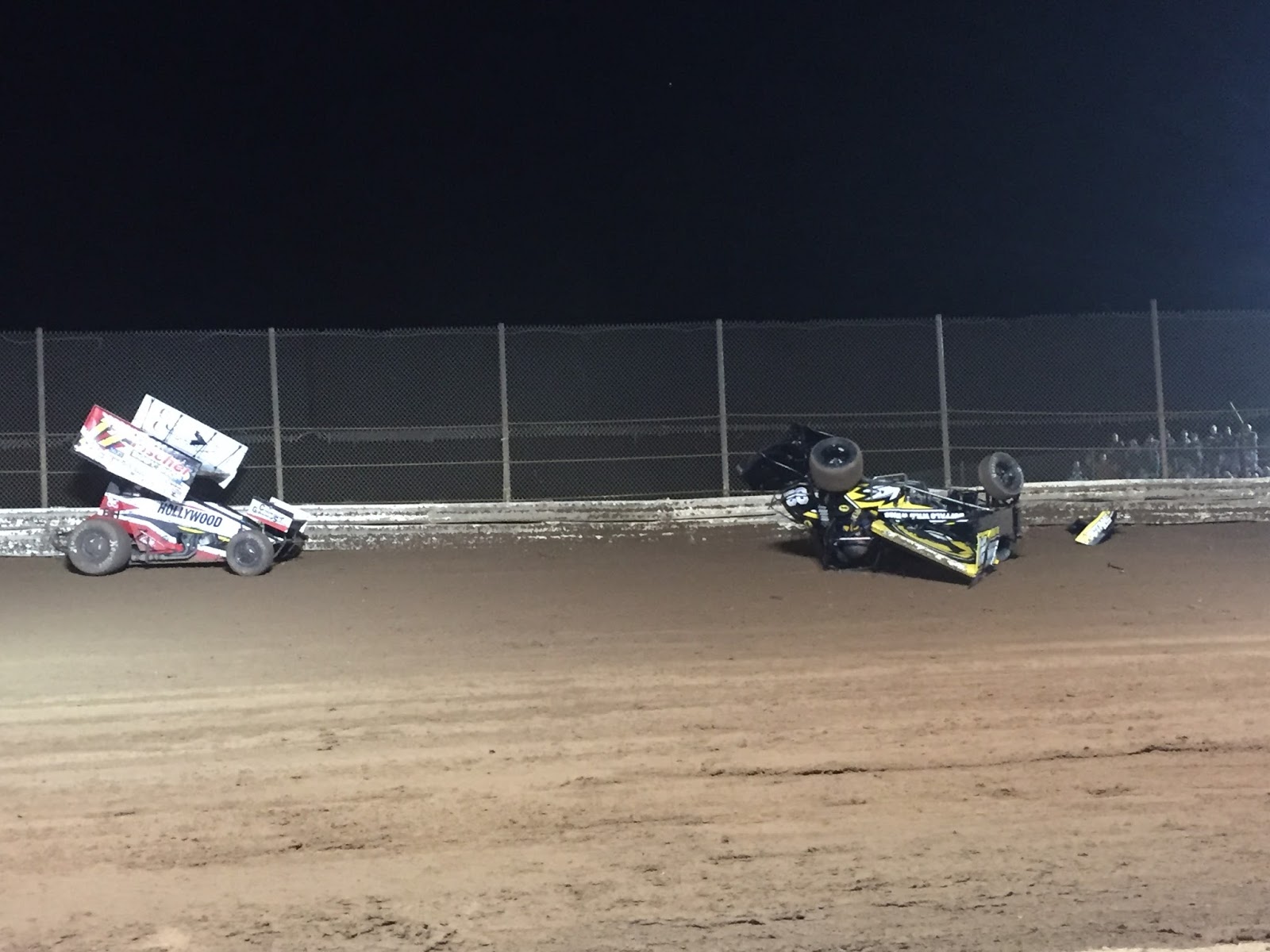 | What remained, after Dusty Zomer & Josh Baughman made contact, entering turn 1 |