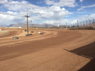 | Arizona Speedway is a 1/3 mile semi-banked dirt oval (view from turns 1 & 2) |