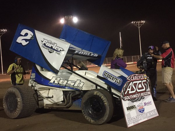 Washington state native Logan Forler held off Dusty Zomer and wired the Lucas Oil ASCS sprinters Saturday night at Speedway Park (AZ). It was the second southwestern tour win for Forler who leads that section of the points chase currently.