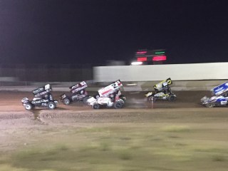 Daryn Pittman proved that he was unbeatable, when starting on the pole. He fired-off and enjoyed a half-straightaway lead, at times. “The Brownsburg Bullet” Joey Saldana flexed his veteran muscle, keeping pace with Pittman and getting within 1-2 car lengths, at times. “The Big Cat” Brad Sweet and Donny Schatz were on the move! Both drivers showed that if you had a better car and the “guts” to challenge the next driver, you could force your way through on the bottom. It was just past the halfway mark of the race that Shane Stewart, 3rd place at the time, had difficulty lapping Jacob Allen. Stewart pushed very high, well above the groove, which had only worked its up to the middle of the track. Stewart did a masterful job of keeping his car off of the wall on entrance of turn 1, but he quickly lost positions to Schatz and Sweet. Schatz worked the bottom line just like you’d expect from a 7-time Champion and he slipped by Saldana with about 5 laps to go, in the 30-lap Main Event. Schatz seemed to be closing on Pittman in the final laps, but no one had anything for DP, as he picked up his 3rd World of Outlaws main event win of the season and his second in-a-row, after winning at Perris in Southern California on Saturday night!