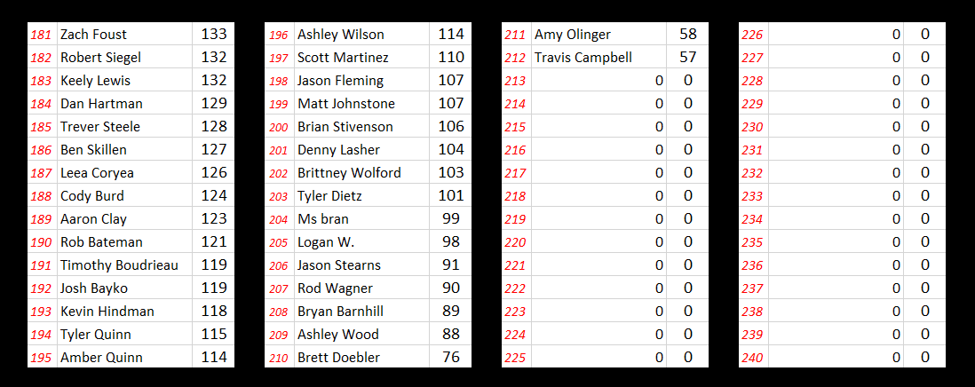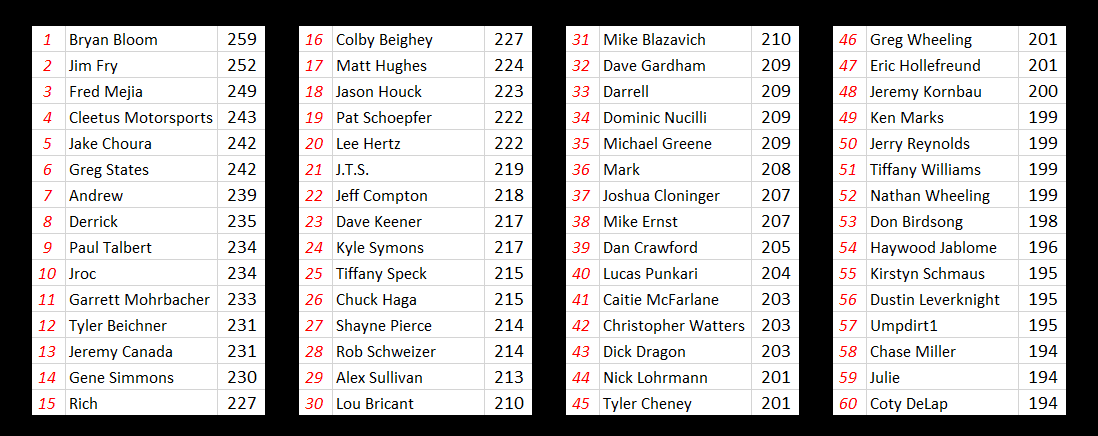 Here are the updated points following the 2nd preliminary race at Lernerville Speedway (day race). The points set up a tight battle for the top spots heading into the Firecracker 100 finale. The way the standings set now, countless contestants could still pick up the win and receive the $50 Visa Gift Card.