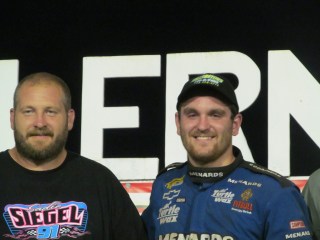“We got side by side down the front straight and I came out and I was really surprised that I didn’t see him up there so I went up top and he came back with a good run on me but he have me roon,” Swartzlander said in victory lane. “It was a good, clean race and it was fun. I really wouldn’t have got him if it weren’t for that caution, he was getting away from me a little bit, but we’ve lost a few to cautions and we got one back here tonight. We’re really starting to get this new car dialed in and the crew’s been working good.”