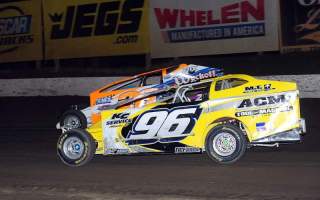 When action resumed, Strunk was still in command as Billy Pauch , Von Dohren and Rick Laubauch began moving forward from their mid to back starting positions, giving all indications that a logjam of legends would occupy the top five positions.  A legend in the making currently, Watt, stood the best chance to break up that scenario. And for a brief period, he appeared as if he might possibly leave the current legends in his wake.   Following a restart on lap 20 for Pauch who damaged the front end of his car, Watt powered around Strunk on the top side with authority and began to pull away while behind him, VonDohren moved around Swinehart to take the third spot on lap 26.