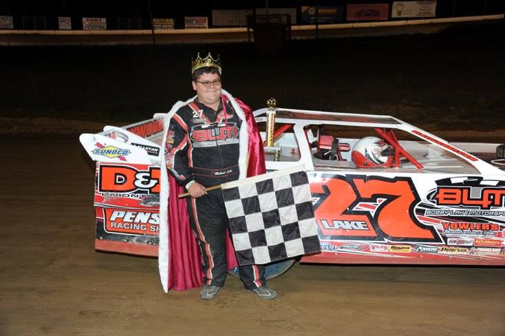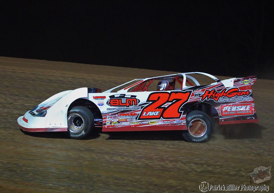 Lake started on the poll alongside area standout Keith Barbara as the field came to the opening green flag, but coming out of the final corner on lap one, a four car pileup altered the plans of Rob Marhefka and Skip Hare ending their nights prematurely. Also affected in the melee were contenders Andrew Wylie and Pancho Lawler.