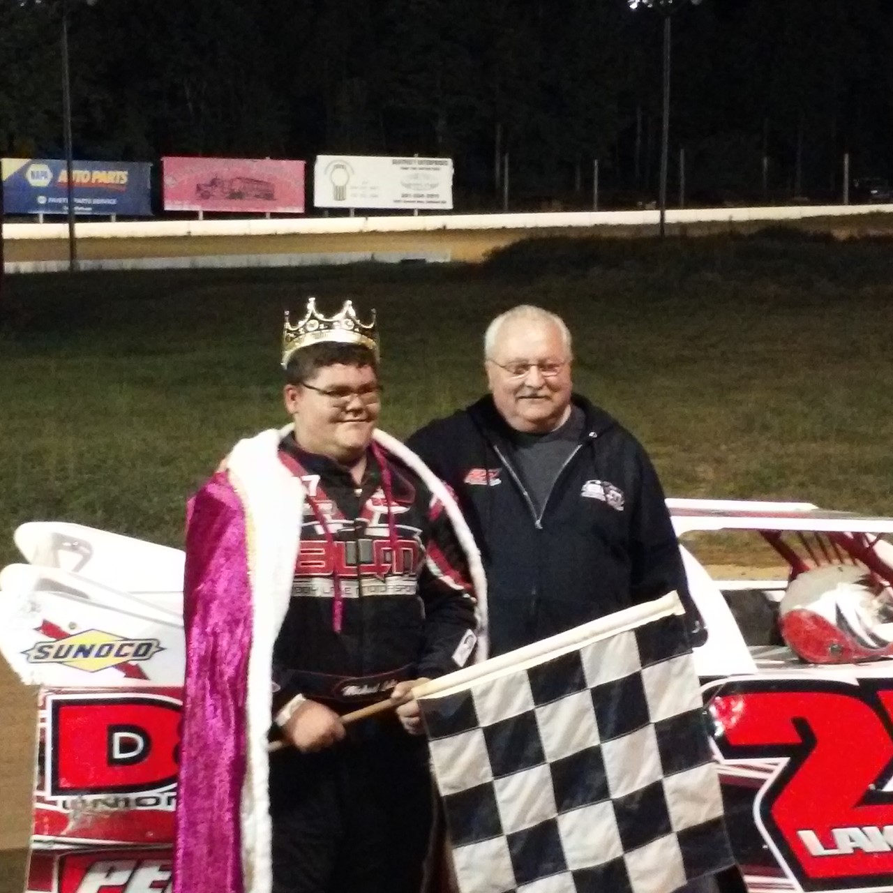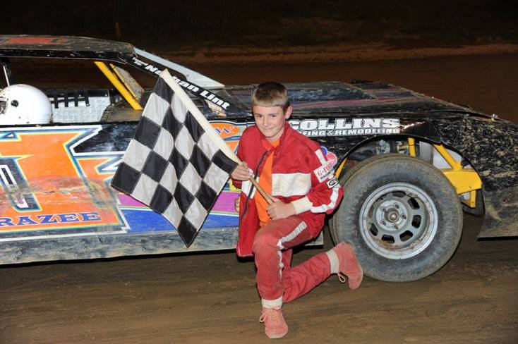 Thirteen year old Ryan Frazee never once looked a gift horse in the mouth. However, to get that gift sometimes, you’ve got to be in the right place at the right time. Frazee was, and kept close enough to capitalize on a wild last lap sequence of events that saw a possible victory for Anthony Montparte and posibly Josh Kreasko get turned upside down on itself with a turn four melee.