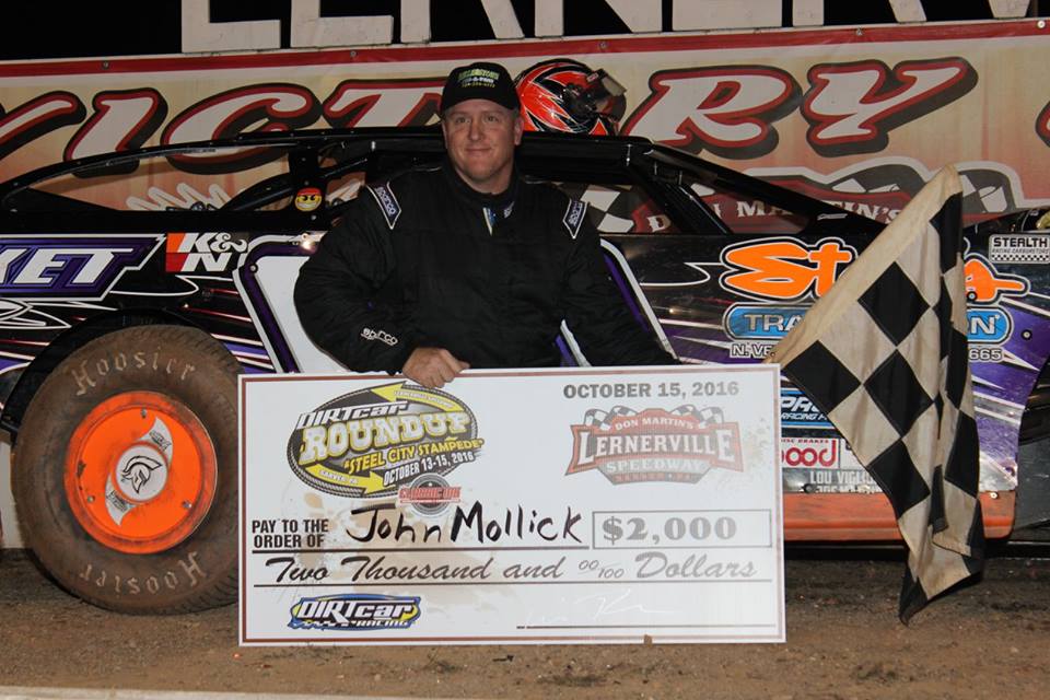 John Mollick had been riding the crest of a wave coming into the weekend having beaten a stout field of competitors the previous Saturday night at Pittsburgh Pennsylvania’s Motor Speedway, a surface that he’s become fairly familiar with over the years. Flash forward a week later, and Mollick was up against much the same stout field, but at Lernerville and with a touring series championship running simultaneously behind him as Bryce Davis and John Waters were both putting forth their best effort for all the marbles on Saturday night. Mollick was not phased by either aspect though as he kept focus in a tight battle with Waters en route to the $2,000 pay day in the 25 lap main event.