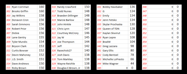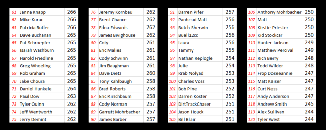 Kyle Symons (@livedirtupdates) started off strong. He leads after the first round of features by a slim margin over Nick Lohrmann (@NLohrmann25). We currently have a three-way tie to round out the podium between Ryan Leister, Tyler Beichner (@tyler_beichner), and Justin Hart (@Justinhart1h).