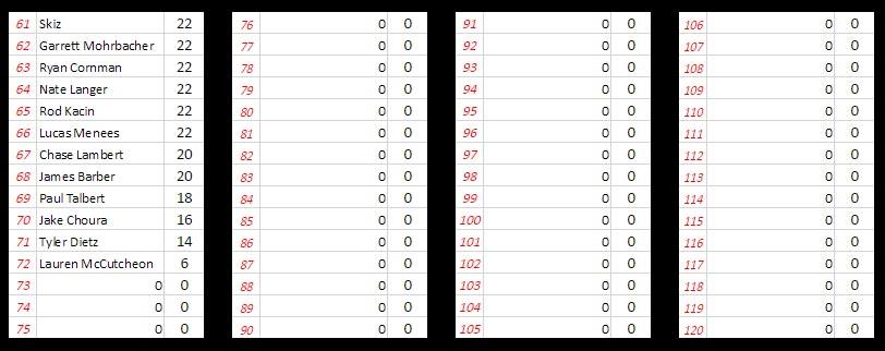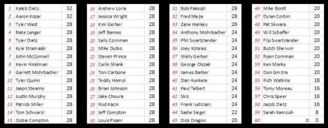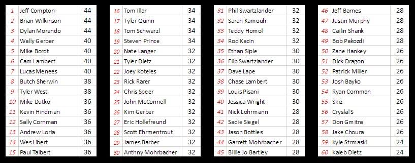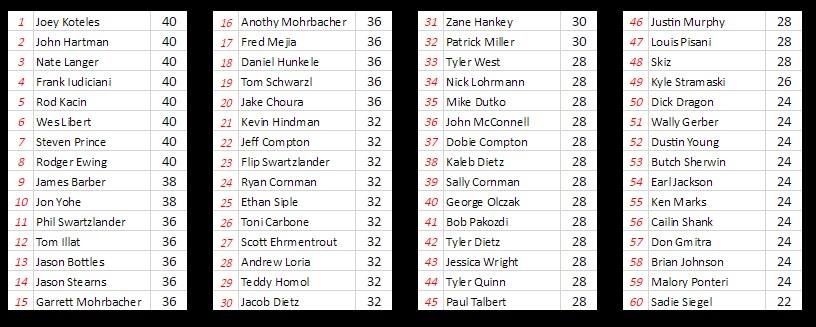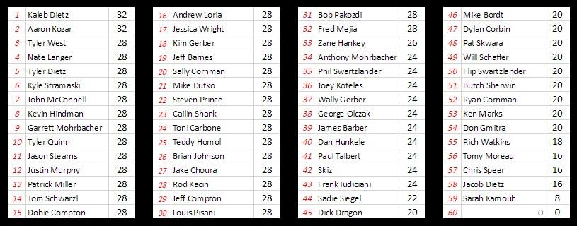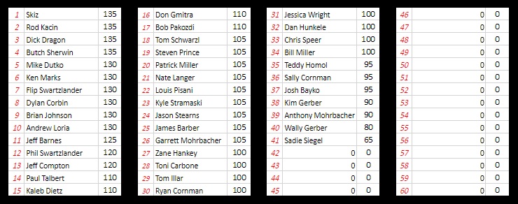 Congratulations to our champion Rod Kacin and to Andrew Loria and Jeff Compton who brought it each week and down to the wire. You all competed and battled and left nothing on the table! Also, congrats to our David Gardham Memorial Rookie of the Year award winner Kaleb Dietz!