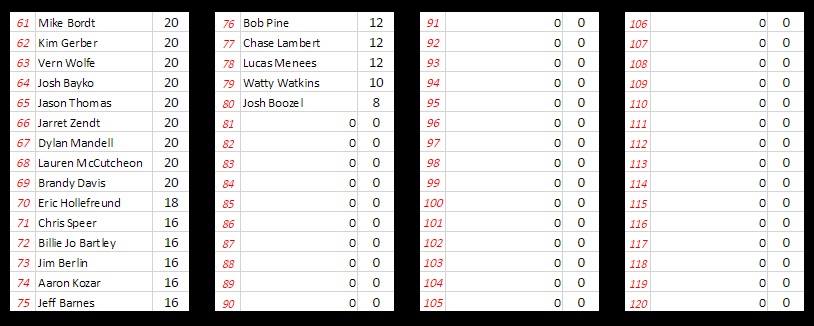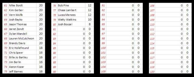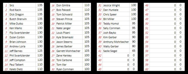So what does it take? First off, it would be helpful to follow on twitter @TheDirtNetwork or follow us on Facebook as we do a lot of announcements via social media. We even remind you if you haven’t turned in your selections yet, as best we can anyway. How’s that for customer service! Next, it takes the commitment to play EVERY WEEK. With the amount of players we have, it’s very difficult to win this if you skip a week or two. And lastly, it takes a little work on your end. Find out if a driver you pick may be touring on a particular Friday. Expect invaders when certain series are off, do a little homework on social media now and then.