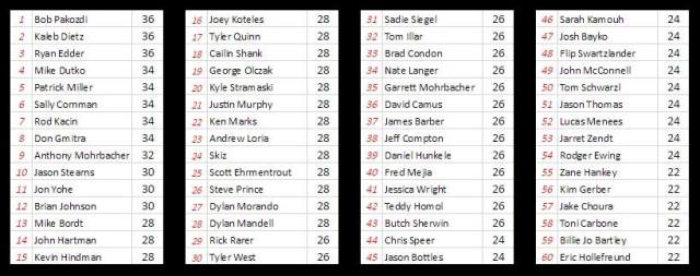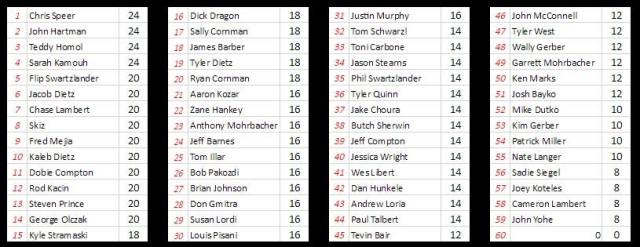 Week 17 (Commonwealth Clash) Winners: Butch Sherwin, Dick Dragon, Rod Kacin, Skiz, Mike Dutko, Ken Marks, Flip Swartzlander, Mike Dutko, Dylan Corbin, Brian Johnson, Andrew Loria