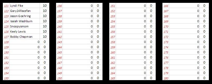 2. When you click the link, it will redirect you to a separate pick entry page. Simply follow the instructions. You will select ONE driver per each of the fab four divisions and then you will be prompted to WRITE IN a wild card selection. Once you’ve submitted picks, there will be NO CHANGES.