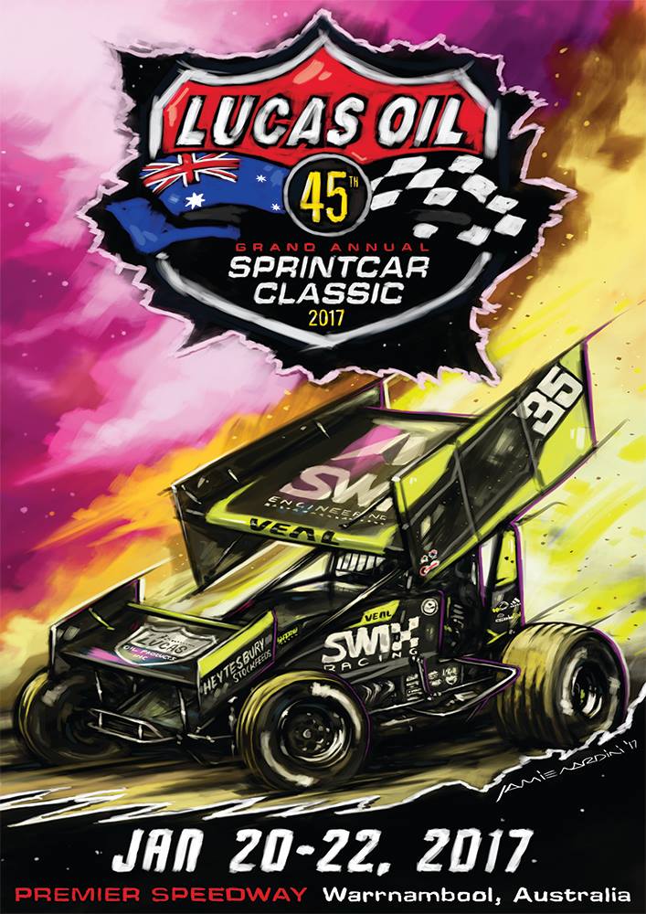 1st Place: Autographed hand drawn Sprintcar Classic Poster signed by Jamie Veal