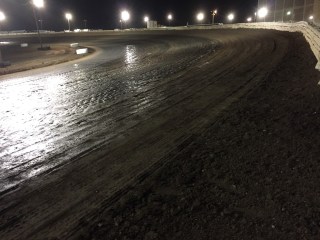 Track surface was dry and slicked-off following Heat Race and B-main action, with the only moisture remaining up high