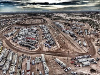 Overhead view of Arizona Speedway’s packed pit area, during the 2017 Wild West Shootout!