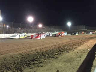 Late Model heat race winners were asked to return to the front stretch, allowing them to “draw” for their starting positions.  Wednesday night’s edition saw 4 cowboy hats lined-up on the front stretch wall, each having a number underneath it.  Terry Phillips drew the #1 hat, allowing him to start the main event from the pole position!  Rodney Sanders drew the #2 hat, while Dustin Strand and Billy Moyer Sr would start 3rd and 4th in Wednesday night’s main event.  There was also one Late Model B-main on Wednesday, which Garrett Alberson charged to win over Billy Franklin, AJ Diemel and Andrew Kosiski.  All 4 drivers punched their “tickets” to the main event!