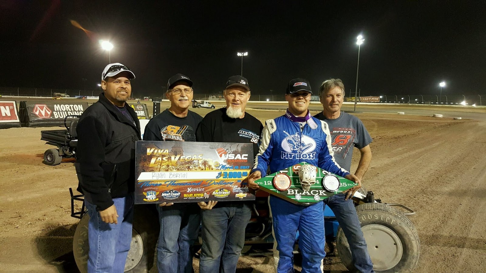 Thankfully for Ryan, his bad luck was finally put to the wayside, as he raced the 56 Phulps Motorsports entry with the 360 USAC West Coast Sprint Car Series at Las Vegas, this past weekend.  This event is held in-conjunction with the World of Outlaws Sprint Cars, so the non-wing Sprint Cars are somewhat of a “support class”.  That didn’t matter to Bernal, as he swept the weekend, pocketing the $3,000 payday on both Thursday and Friday nights, in Sin City.  What’s more impressive, Ryan won Friday night’s event from 22nd starting place after losing an engine in his Heat Race and tagging the field with a back-up engine!
