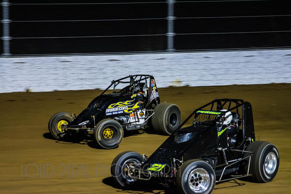 On the restart, Haudenshild was stalked by Windom who was relentless in his pursuit as the two cars put a significant gap between themselves and the rest of the field, putting lapped traffic behind them with reckless abandon while switching grooves sometimes twice on the same lap. Both drivers navigated the rough portions of turn one and turn two and the lappers while making passes that others dared not attempt as they traded the lead. Windom looked at times that he might run away from the field as Haudenschild lost momentum from time to time, but the wily veteran made up ground quickly and passed Windom down low with the laps winding down.