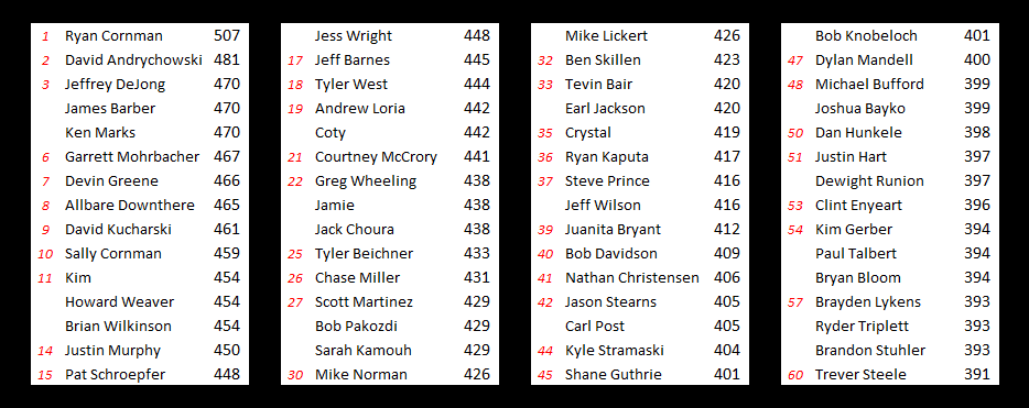Ryan Cornman (@Corndaddy02) earns the title of the “7th Annual Firecracker 100 Pick ‘Em Champion”. Ryan is a pick ’em regular and his years of experience have finally paid off. Not only did he claim the first place prize of $75, but he did so with a 26 points margin over second place! Cornman assembled the driver roster of Brandon Overton, Brandon Sheppard, Tim McCreadie, Devin Moran, Tyler Erb and Morgan Bagley.
