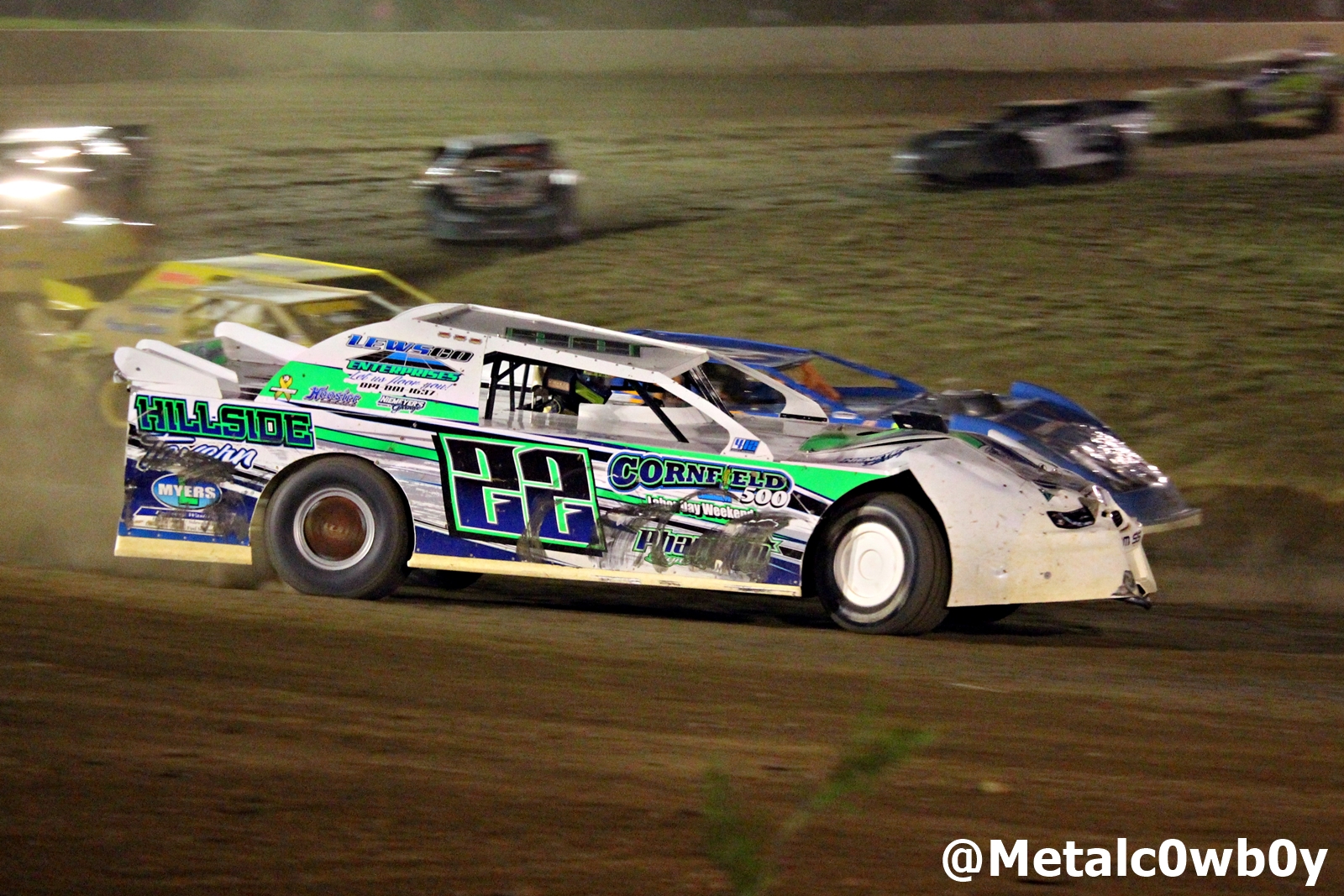 Jackson Humanic and Rod Laskey led the field of Street Stocks to the green, with Laskey taking the early lead until he had problems on lap 3 bringing out the caution on lap 3 and relinquishing the lead to Humanic. On the following restart Humanic would lead James Scharba and Eric McCray who would be passed on lap 6 by Jim Kennerknect. Scharba would be joined in a 3-wide battle for second by Brandon Groters and Chris McGuire on lap 12. The race would be slowed for caution on lap 14 when Scharba would spin in turn 2 leaving Kennerknect nowhere to go but into Scharba’s rear axle, knocking it out from under the car. As the green and white flags were waving to restart on the final lap, Humanic was followed by Groters and McGuire. Groters was able to make the high line work, passing Humanic in turn 4 for victory.