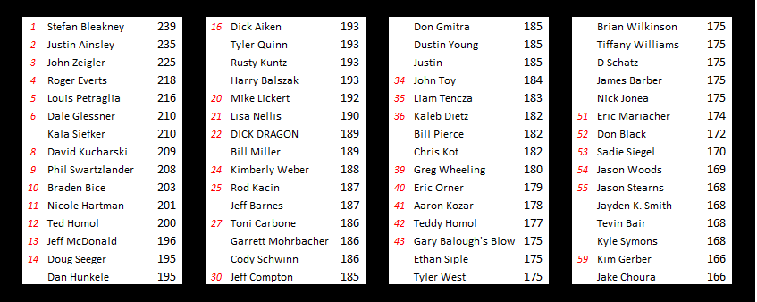 Stefan Bleakney took the checkers as the winner of this year’s Pick ‘Em contest by a narrow four-point margin over second place despite only having 5/6 drivers enter the event. His winning total of 239 points is the closest anyone has ever come to a perfect night. The highest possible point combination this year would have resulted in 253 points. Stefan’s roster of drivers was composed of Daryn Pittman, Donny Schatz, Tim Shaffer, Chad Kemenah, Brandon Spithaler and Logan Wagner. A $75 VISA gift card will be in the mail shortly to our newly-crowned 2017 Don Martin Memorial Silver Cup Pick ‘Em champion.