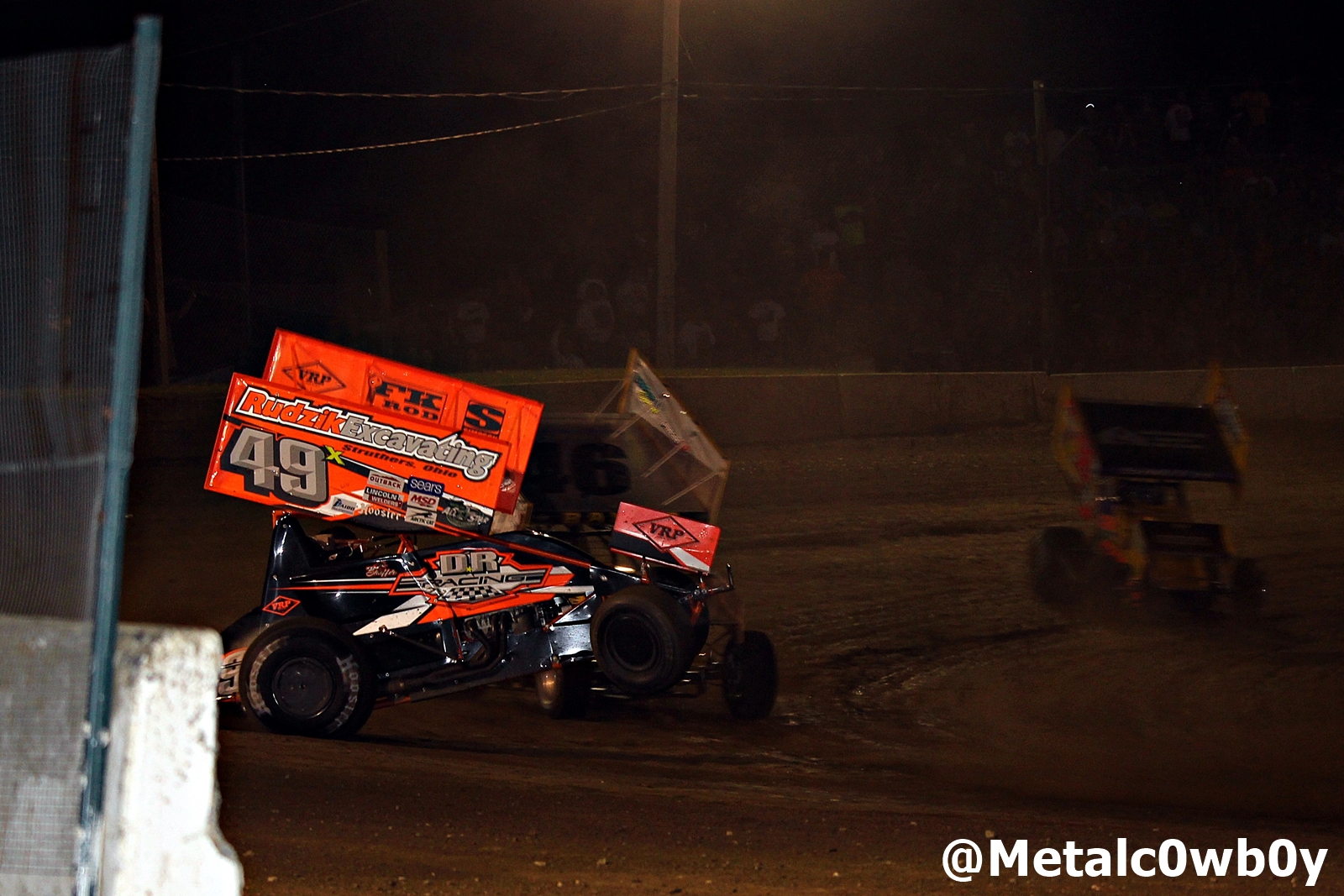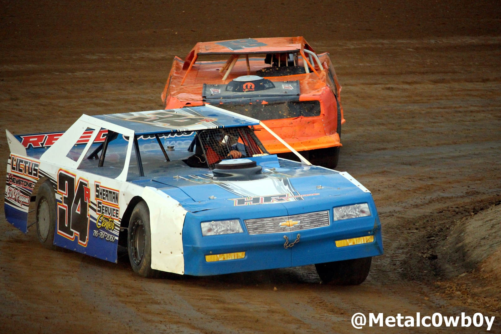 The RUSH Crate Late Models would have 26 cars sign in for a non-points race on Friday night. Kyle Zimmerman and Dennis Lunger lead the field to the green flag with Zimmerman taking the early lead. A lap 2 incident deep in the pack would involve at least 6 cars and bring out the yellow. Zimmerman would lead Lunger, Chad Wright, Mike Pegher Jr. and Khole Wanzer to the green on the following restart.  Wright quickly would find his way to the second position just before John Waters and Andy Boozel would tangle bringing out the yellow again on lap 3.  Chad Wright would go high into turn 1 on the restart and find himself in the lead on lap 4.