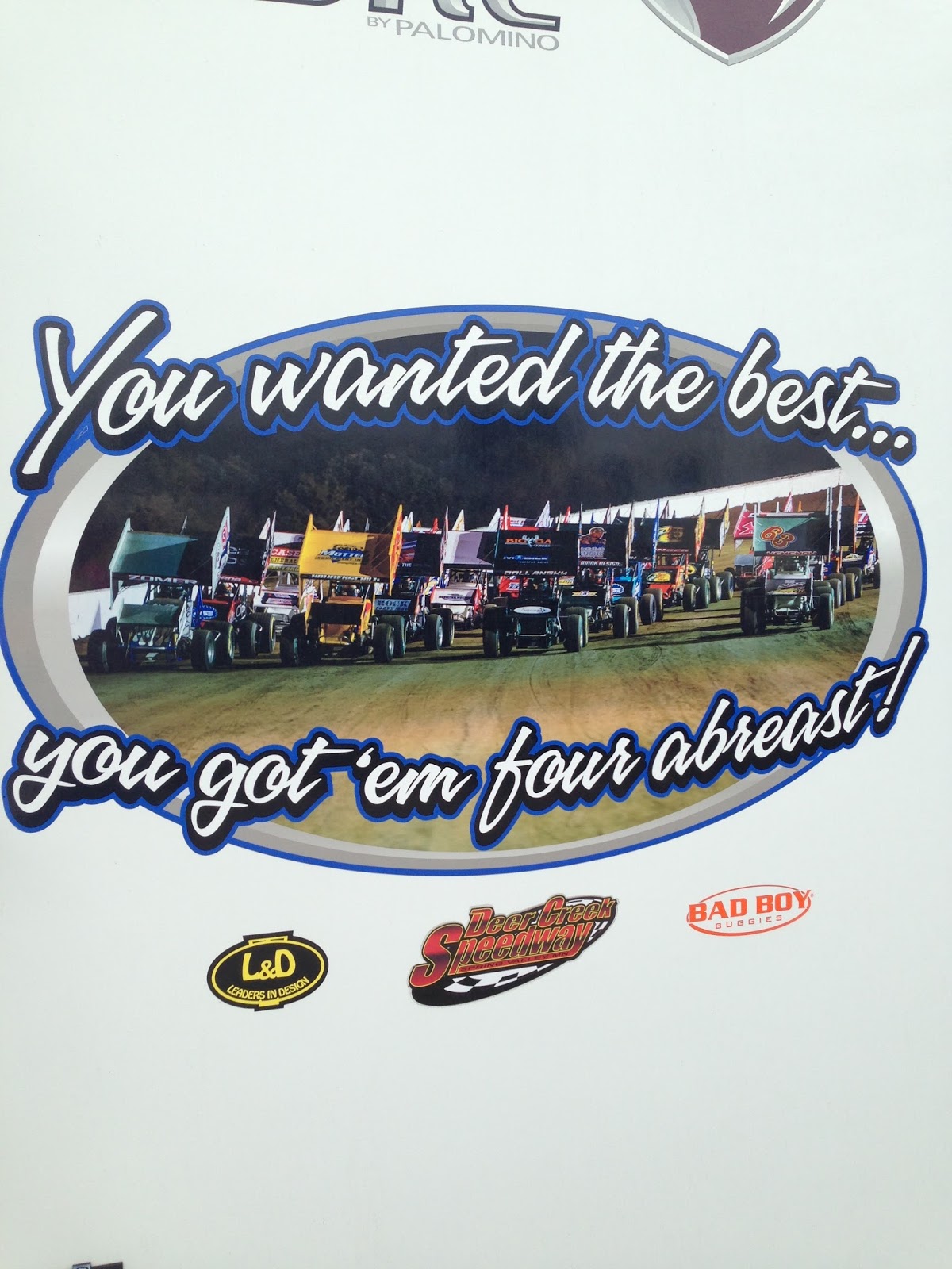 | Hundreds of RV’s and campers fill the camp grounds, some with Sprint Car art |