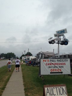 | A Sprint Car on a stick greets fans walking from the campsite, to Knoxville Raceway |