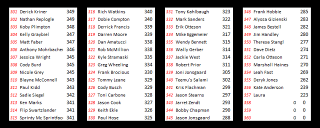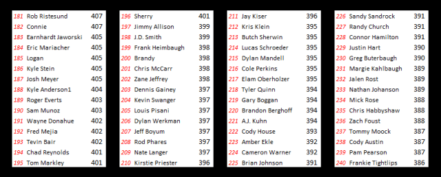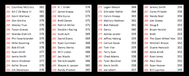 Rounding out the podium and receiving a $15 Subway gift card is Scott Ellerbrock, who interestingly enough was our last entrant of the contest as he submitted his picks just minutes before the deadline last week. Ellerbrock’s drivers were Brian Brown, Donny Schatz, Daryn Pittman, Terry McCarl, Mark Dobmeier and Trey Starks.