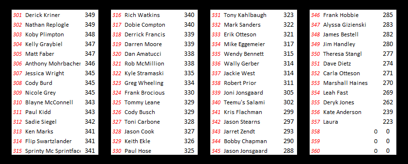 Rounding out the podium and receiving a $15 Subway gift card is Scott Ellerbrock, who interestingly enough was our last entrant of the contest as he submitted his picks just minutes before the deadline last week. Ellerbrock’s drivers were Brian Brown, Donny Schatz, Daryn Pittman, Terry McCarl, Mark Dobmeier and Trey Starks.