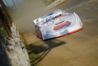 The battle allowed Hawkins to put a little more daylight between himself and the other leaders. The West Virginia driver looked to be well on his way to a victory as he made his way around one piece of lapped traffic after another without losing anything in terms of forward momentum. But fate intervened with 17 laps in the books when Wrightsman’s car spun high in turn two. Hawkins got the full brunt of the contact while Pegher and Davis made their way through. King was not so lucky though and his contact with the spinning cars put an end to his bid for his first career Jook George Memorial victory.