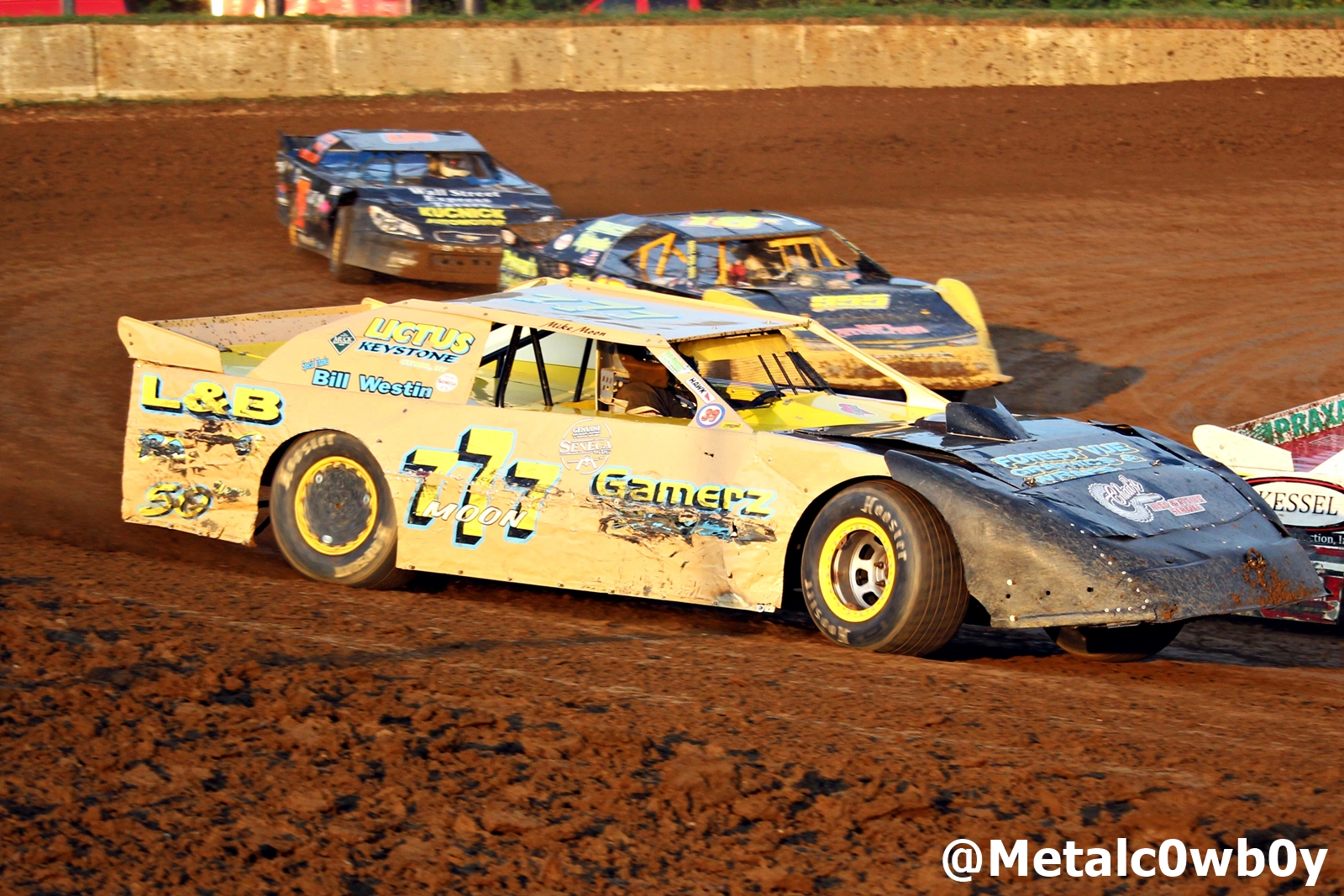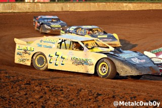 They would continue nose to tail until lap 8 when Miley passed Heckengast for the 3rd position and Chris Madden and Shane Clanton both got around Bagley. Madden and Clanton would race side by side for an entire lap for the fifth position when Clanton spun on the high side of turn 4. With King continuing to lead Sheppard, Miley, Heckenast and Madden, the initial restart would be yellow flagged when Steve Kania slowed after contact in turn 2. Under caution Chris Madden would have to pit for a left rear flat, giving up the 5th spot.