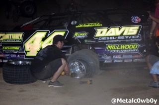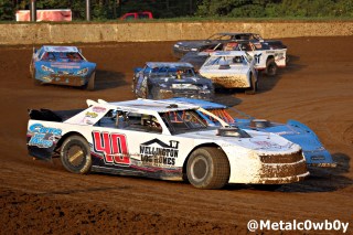 Brad Church and Michael Reed would lead the field of street stocks to the green of the first feature race of the night. Church would take the early lead over Reed, Gary Fisher, John Boardman and Anthony Marotto. The pace would be slowed quickly by a spin in turn 4 by Allen English on lap 2. Upon the ensuing restart, Boardman would quickly find himself side by side with Fisher for 3rd and subsequently Reed for 2nd by the end of lap 4. The caution would again fly on lap 5 when Eric McCray spun in turn 2. This would line up Church at the point over Boardman, Reed, Brandon Groters and Don McGuire. John Boardman would get a great start this time, taking the high line against Church with several attempts to pull even for the lead in the following laps and actually taking the lead as the yellow came out in turn 2 on lap 8. Jimmy Kennerknecht and Charlie McMillen had gotten together in turn 2 forcing the caution.