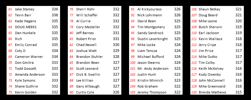 Rounding out the top three was myself, Tyler Beichner (@tyler_beichner). Of course I will not be getting a prize, but these bragging rights will certainly be put to use until we gather again for the 2018 World of Outlaws World Finals next November. My drivers were Sweet, Schatz, Schuchart, Brandon Sheppard, Richards, Moran, Matt Sheppard and Decker.
