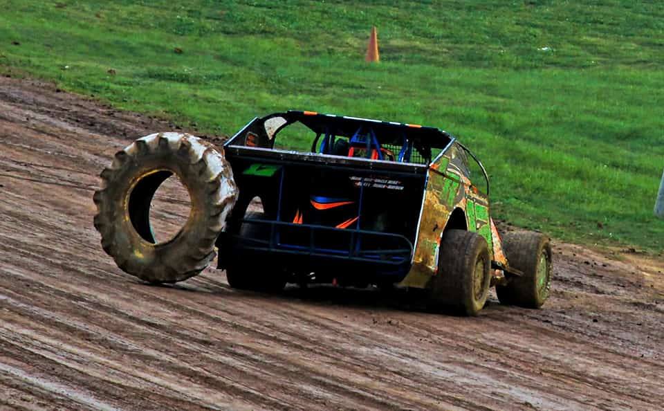 What a great start to the racing on Saturday night. A true display of poetic justice occurred when a Big Block Modified driver competing in the B-Main, I think it may have been Marcus Dinkins but don’t quote me, imposed physical harm to one of the white uke tires in the infield. The driver spun on the backstretch and then had to suffer the revenge of the tire as he watched it stand up, roll halfway down the back stretch and bang into the rear end of his car. That’ll teach him.
