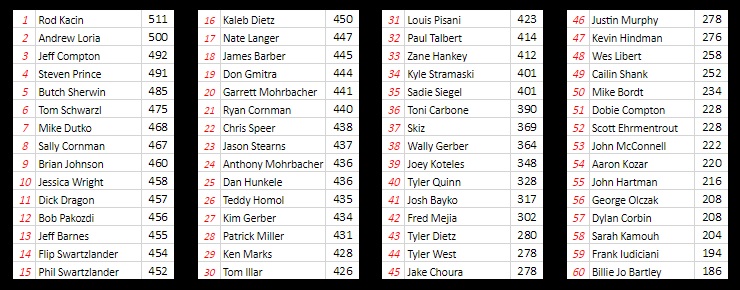 A record 129 players started the season in April, and at the end of the day, through a lengthy regular season that saw far too many rain outs and an extended season, Rod Kacin emerged from the closest year ending battle in Lernerville Pick’Em history to claim his first ever Lernerville Pick’Em Championship!