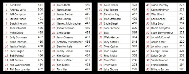 Joining Rod on the podium will be five year veteran Andew Loria, who had an amazing season and second year player Jeff Compton. They were pushed hard by Steven Prince who, as Loria did, led the standings at various points of the season and Tom Schwarzl who was in contention nearly all season long.