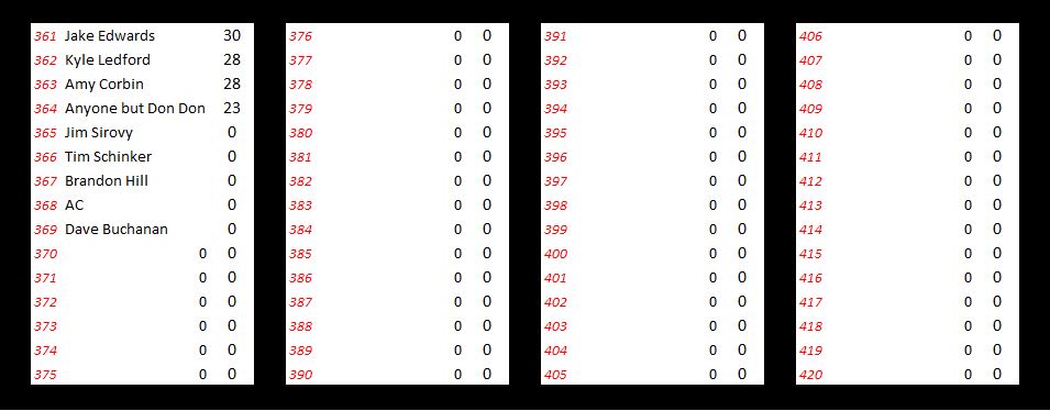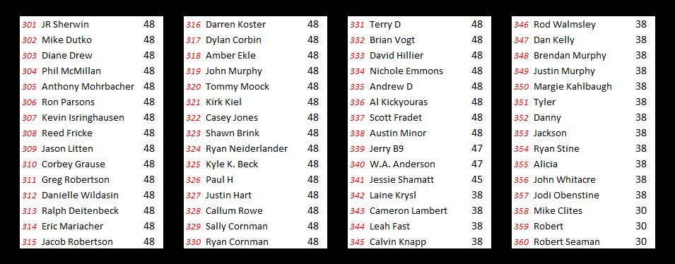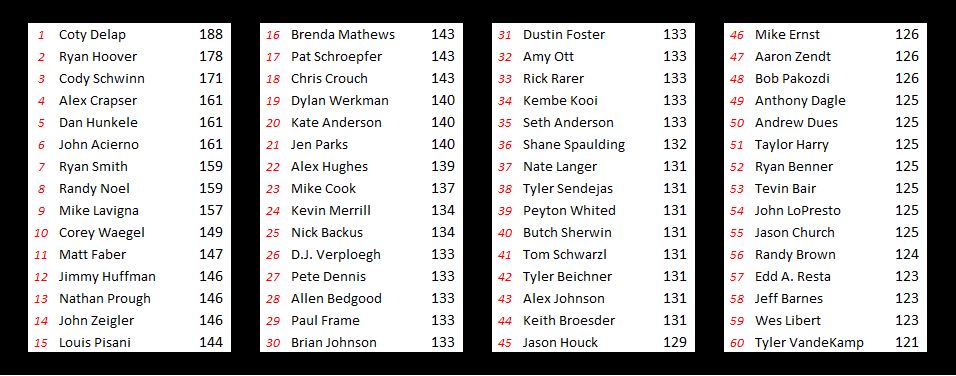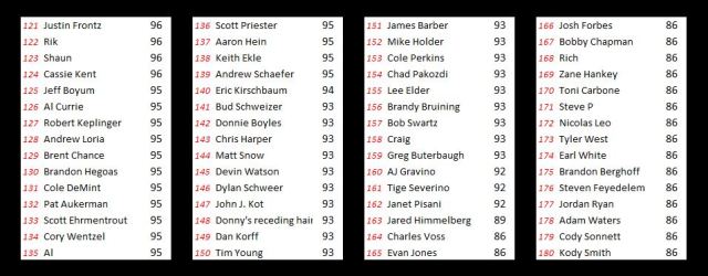 So here you go, if you’re curious where you stand. We’ll be back tomorrow morning with updated results following Prelim Night #2.