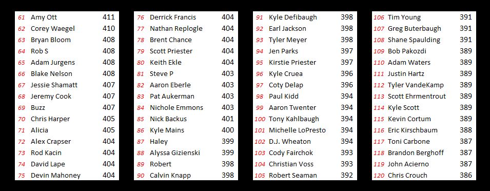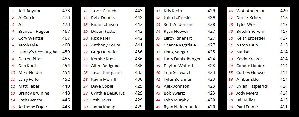 All three guys picked the same group of drivers and accrued a total of 473 points: Brad Sweet (129 pts), Donny Schatz (113 pts), Aaron Reutzel (102 pts), Carson Macedo (98 pts) and Sammy Swindell (31 pts).