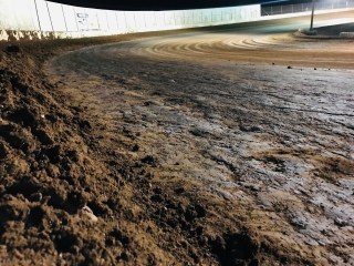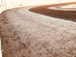 | Track conditions in turns 1 & 2 just before wheelpacking, as the sun begins to set behind Arizona Speedway |