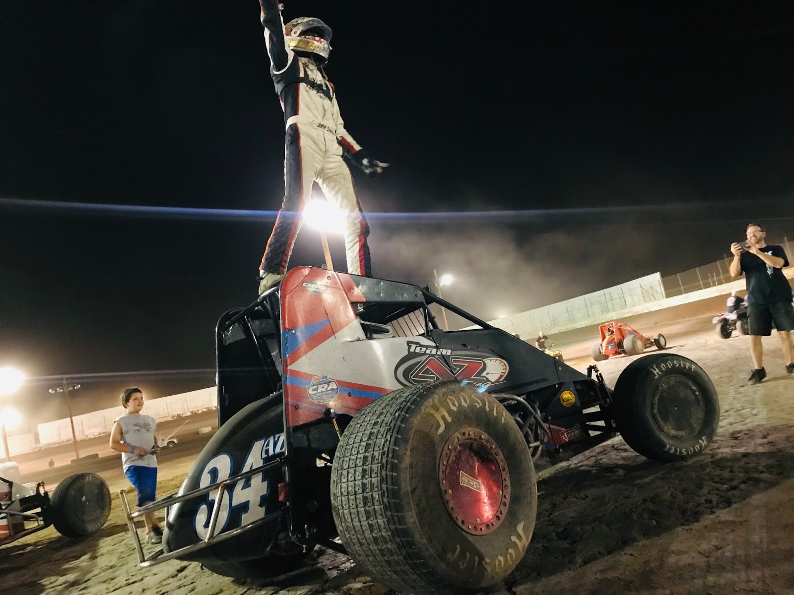 Much like Friday night, the Arizona Speedway Track Crew had all USAC/CRA competitors roll into the infield while they worked the surface, prior to the 30-lap feature. Jonah applied plenty of moisture on the outside while tilling both the bottom and top lines. Once cars were pushed onto the track, they were given a few hot laps to pack the recently-worked surface. Hearing the roar of the engines and knowing that 21 of the best Sprint Car drivers in the Southwest were prepared to do battle for 30 laps, is enough to get anyone’s adrenaline pumping. It’s moments like these where you can feel the electricity in the air and you hear increased noise from the crowd, as anticipation intensifies!