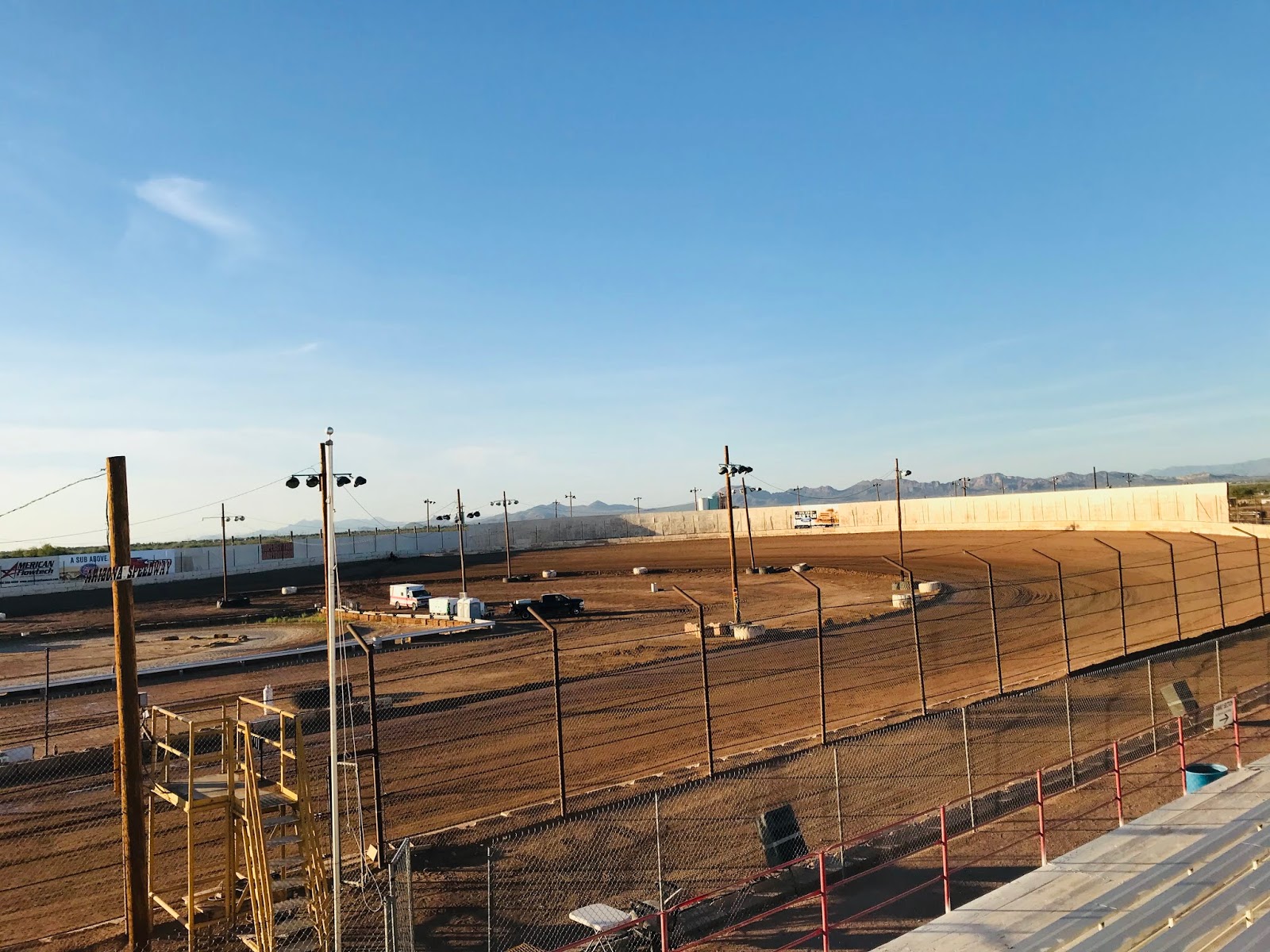 It was a surprisingly hot day in Queen Creek, Arizona on Friday, with temperatures well over 100 degrees, as we near October. Concern was high for track conditions, as that much heat combined with a steady breeze usually equates to dry/slick track conditions. Thankfully, promoter of Arizona Speedway, Jonah Trussel, knows how to prepare for a 100+ degree race day. The Track Crew went heavy with water and a tiller was used throughout the night to keep the track from taking rubber and to keep moisture in the surface.