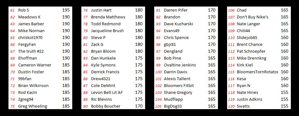 Sheppard was money in the first two shows, earning those who selected him 40 and 50 points on the first two nights, while Brandon Overton managed to score impressive numbers on shows two and three. Jimmy Owens was good for 30 points on all three events, but the selection which may have made the difference was Junghans who went pointless on opening night, but had a great final day, coming through with 45 points, uncommon for a tier three selection.