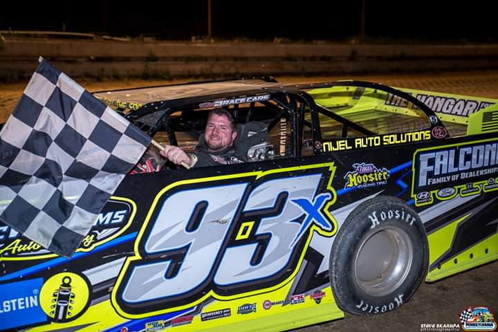 In the 25-lap Diehl Automotive RUSH Late Model Dirt Series Summer Sizzler feature, Mike Duritsky (90J), from Masontown, would start on the pole and to his outside was Lamb (93X). The second row was made up of Mike Reft (9R), from Whitehall, starting in third, and Garrett Paugh (03), from Elkins, West Virginia starting in fourth. When the green flag waved, Duritsky (90J) would keep an early lead with Lamb (93X) and Paugh (03) in tow. Sixth-starting Ben Policz (14B), from Rices Landing, would pass Paugh (03) for third place on lap four and Paugh (03) would then give up the fourth spot to Tony Musolino (3JX), from Carnegie, on the following lap. Duritsky (90J) was already into lapped traffic on lap five and then on lap nine, the event’s lone caution would slow the pace for the 58B of John Boring. Duritsky (90J) would lead the field on the restart but on the next lap, Lamb (93X) would take over the lead. Lamb (93X) would continue to lead through lap 14 when he began to enter lapped-traffic. Lamb (93X) continued to dominate the remaining 11 laps of the race, enroute to his first PPMS win of the season and his first opening night victory. He was followed by, Policz (14B) in second, Duritsky (90J) in third, Reft (9R) in fourth, Nico Dabecco (F1) in fifth, Musolino (3JX) in sixth, Paugh (03) in seventh, Christian Schneider (1ST) in eighth, Bill Kessler (09) in ninth, and Logan Zarin (1Z) would round out the top 10. Heat race winners were Josh Stoica (22J) and Schneider (1ST).