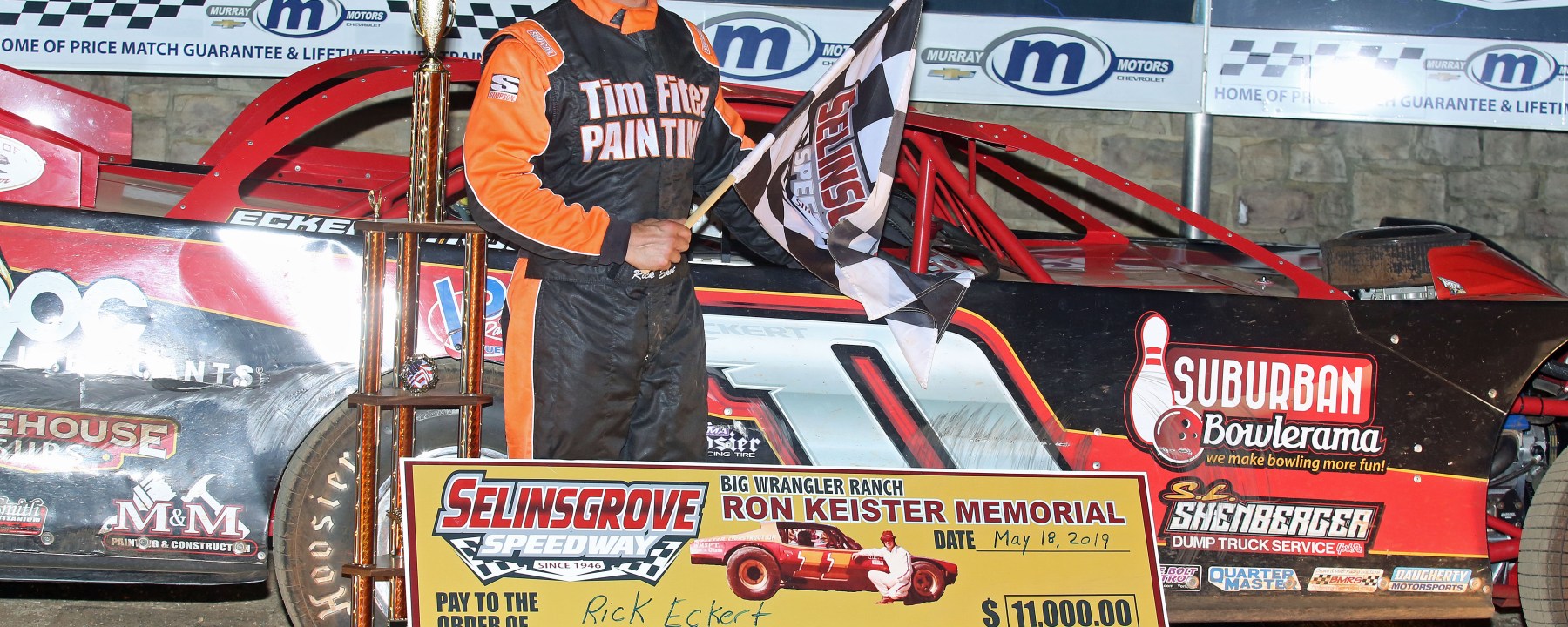 SELINSGROVE, Pa. – Rick Eckert of York, Pa., out-dueled Mason Zeigler of Chalk Hill, Pa., by taking the lead from Zeigler with two laps remaining to pick up the victory in the first-ever Ron Keister Memorial at the Selinsgrove Speedway. The victory was worth $11,000 for Eckert.